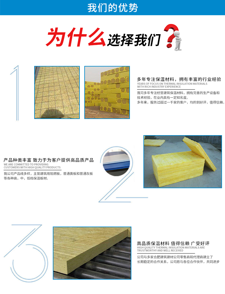 巖棉隔熱板與其他節(jié)能墻體系統(tǒng)成比例。巖棉體系有利于壁內(nèi)水蒸氣的排放,導(dǎo)致內(nèi)部凝結(jié)和凝結(jié),結(jié)構(gòu)層更干燥,更溫暖。接下來(lái)由安徽煒源建材的小編給大家介紹一下巖棉板板材有哪些優(yōu)勢(shì)?夾心板...